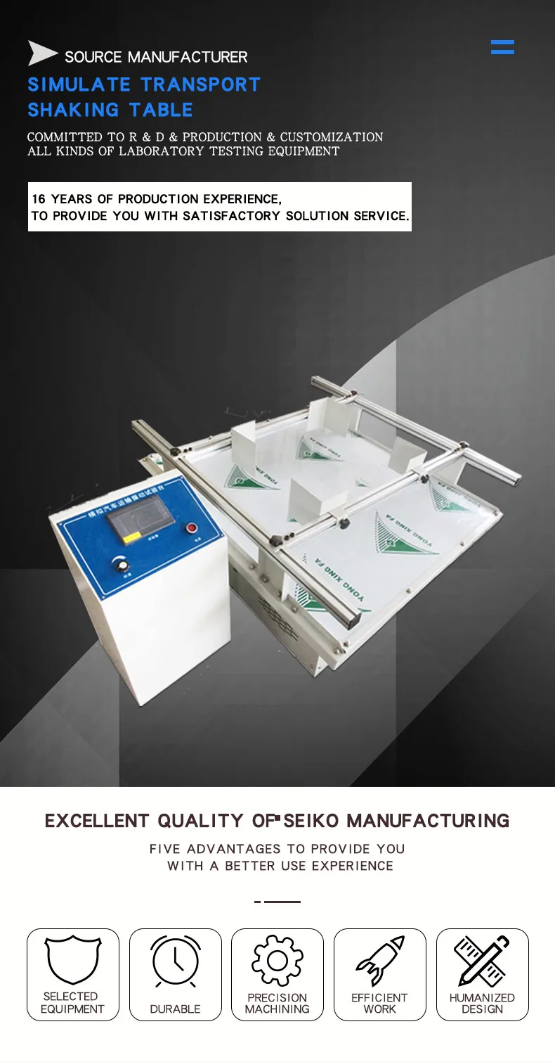 The simulated transportation vibration table is also called "vibration table", which simulates the damage caused by the bumps in the car transportation, and is used to identify whether the product can withstand environmental vibrations. It is suitable for electronics, electromechanical, optoelectronics, automobiles, toys, etc. Research, development, quality control and manufacturing in various industries. It is a rare testing machine for you to improve product quality and reliability.